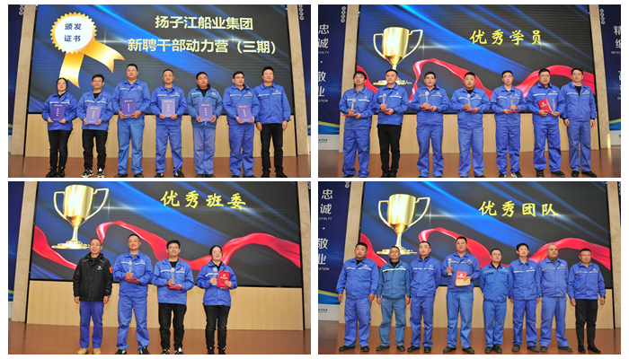 最終,結合小組平時課堂積分和最終匯報成果得分,評選出了此次動力營的1個優勝團隊、3名優秀班委和6名優秀學員。揚子三井造船副總經理陳國強為獲得“優秀團隊”稱號的小組頒發榮譽證書和獎勵。新揚子造船副總經理倪榮為獲得“優秀班委”稱號的三名學員頒發榮譽證書和獎勵。揚子鑫福造船總經理助理劉銀君為獲得“優秀學員”稱號的6名學員頒發榮譽證書和獎勵。集團黨委書記張宏飛為學員們頒發了結業證書,祝賀全體學員順利結業。