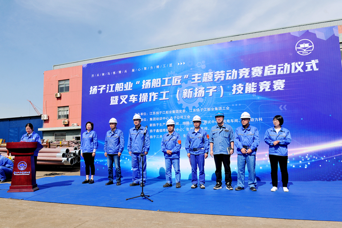 4月24日,揚(yáng)子江船業(yè)“揚(yáng)船工匠”主題勞動(dòng)競(jìng)賽啟動(dòng)儀式暨叉車(chē)操作工(新?lián)P子)技能競(jìng)賽在新?lián)P子造船舉行。集團(tuán)副總經(jīng)理兼新?lián)P子造船總經(jīng)理杜成忠,新?lián)P子造船副總經(jīng)理倪榮,新?lián)P子造船總經(jīng)理助理茆宏兆,揚(yáng)子鑫福造船總經(jīng)理助理劉銀君,集團(tuán)技術(shù)中心技術(shù)部部長(zhǎng)蔣才平,新?lián)P子質(zhì)量管理部部長(zhǎng)唐松,揚(yáng)子鑫福造船工會(huì)主席陳紅,揚(yáng)子三井造船工會(huì)主席司凌鈺,以及各造船子公司相關(guān)承辦車(chē)間部門(mén)領(lǐng)導(dǎo)、參賽職工代表和裁判員代表等參加啟動(dòng)儀式。