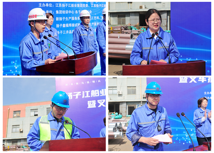 啟動(dòng)儀式上,新?lián)P子造船副總經(jīng)理倪榮代表公司作致辭;新?lián)P子造船工會(huì)主席周黎黎代表組委會(huì)宣讀了本次勞動(dòng)競(jìng)賽方案和競(jìng)賽考評(píng)細(xì)則;員工代表朱楠作承諾發(fā)言;裁判代表李勁松宣誓發(fā)言。集團(tuán)副總經(jīng)理兼新?lián)P子造船總經(jīng)理杜成忠宣布勞動(dòng)競(jìng)賽啟動(dòng)。