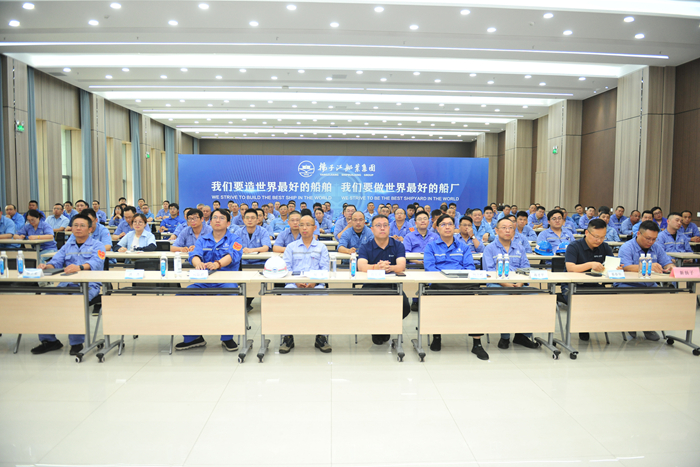 6月25日下午,揚子江船業集團內訓師半年度總結暨第三期內訓師(智改數轉專項)項目啟動儀式在集團行政大樓多功能廳成功舉行。新揚子造船副總經理倪榮、新揚子造船副總經理兼集團綜合管理部部長茆宏兆、揚子鑫福副總經理劉銀君、揚子三井造船總經理助理兼揚子三井綜合管理部部長楊立峰等領導嘉賓出席,各子公司生產、技術條線部長、內訓師團隊骨干成員以及安全兼職講師等120余人參加會議。