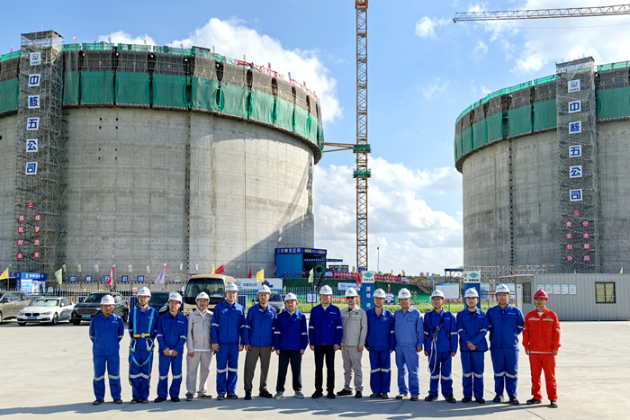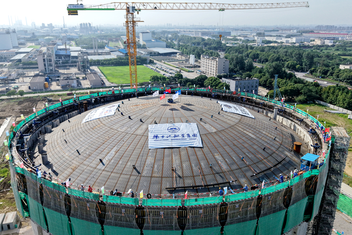 該項目單臺LNG儲罐拱頂重量達463噸,氣壓頂升作業屬超過一定規模的危險性較大的分部分項工程,技術難度與風險管控要求極高。集團統籌資源,聯合中國五環工程有限公司、中國核工業第五建設有限公司,通過對氣頂升五大核心系統聯合檢查驗收和全流程精準調控,最終實現拱頂安全平穩就位,充分體現了集團在大型能源基礎設施建設領域的專業化管理能力和"造船+"管理體系優勢。